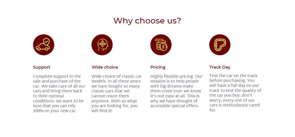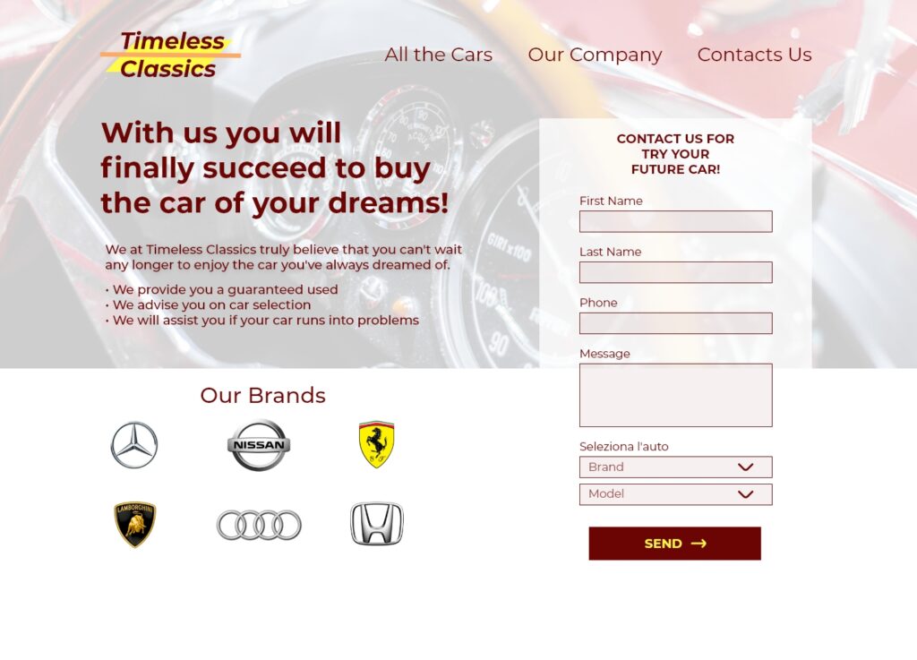 In questa sezione ho inserito vari elementi e ho creato una sovrapposizione tra l’uno e l’altro. Questa pagina rappresenta un modello di auto rivenduto dall’azienda.